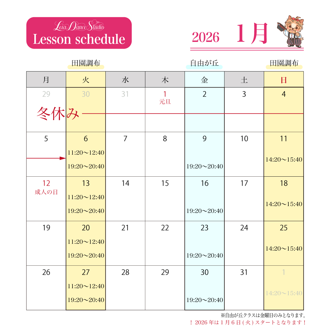 ※曜日によってレッスンスタジオが異なりますのでレッスン受講、見学の際にはご注意ください