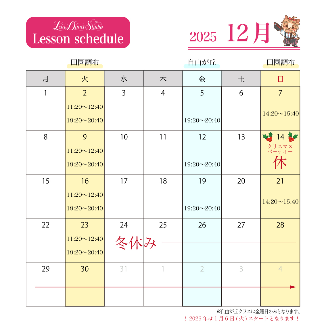 お知らせ スケジュール 2025/11/24 2025年12月レッスンスケジュールと教材について 2025年12月のレッスンスケジュールのお知らせ ◎冬休みのお知らせ 2025年12月25日(木)〜2026年1月5日(月)まで冬休みとなります。 ◎12月のレッスン日について 休講日:12月14日(… Read more