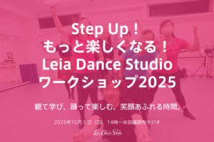 2025年10月5日(日)、Leia Dance Studio 初めての 特別ワークショップを開催します! しかもこの10月は、スタジオがオープンしてちょうど2周年の記念月。 テーマは「観て学び、踊って楽しむ、笑顔あふれ … 続きを読む 【10/5開催】Step Up!Leia Dance Studio特別ワークショップ【参加者募集中】